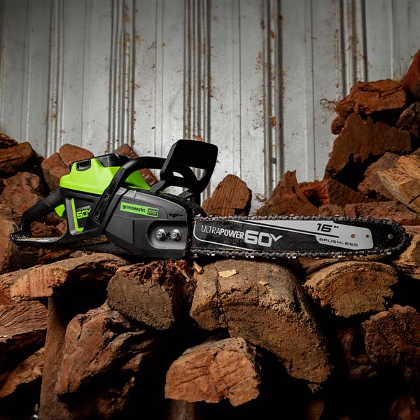 The GREENWORKS® 60V chainsaw delivers more torque and faster cutting performance than typical petrol powered chainsaws, without the noise or fumes.