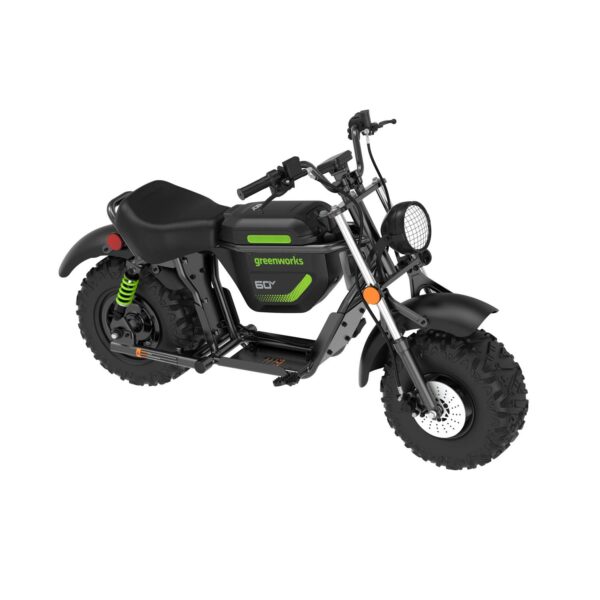 Cruise through farmland, mud, sand, gravel, and more with the GREENWORKS® STEALTH Mini Bike is perfect for kids aged 14 and up who crave the spirit of adventure. Equipped with a brushless 60V 1000 watt motor, this high-performance machine provides 3000 watt max power and advanced climbing capabilities provide up to 32km of fun on a single charge.