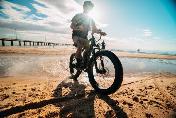 Calling all adventure seekers! Glide effortlessly over rocks, roots, grass and sand on the Greenworks® fat tyre mountain E-bike.