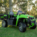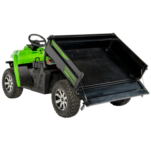 A robust 250kg (550lb) electric dump bed, 454kg (1,000lb) payload capacity and 227kg (500lb) rear towing capability make light work of any hauling or transporting job. The 216mm (8.5″) ground clearance and astounding 180cm (71″) wheelbase allows for easy handling in any off-road situation.