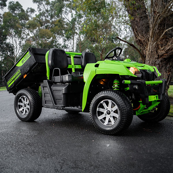 Got some firewood that needs moving or some mulching to do? Let the GREENWORKS® three wheeled and self-propelled 60V garden cart carry the load for you and save your back! Features a self-propelled drive system with variable speed rear wheel drive, perfect for tackling uneven terrain such as grass, mulch or dirt, 12″ flat-free pneumatic tyres, a maximum tub load of 100kg and a spring assisted lift handle to make dumping the contents easy.</span>