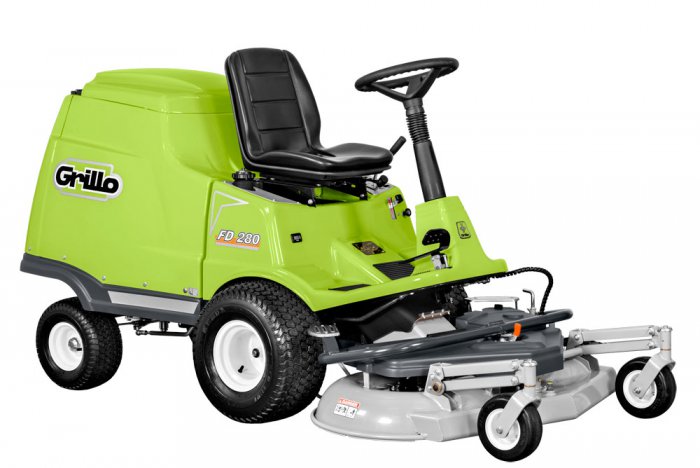 The FD 280 is a high performance mower in terms of its quality cut and collection. The innovative cutting system “Grillo Overblow” produces an increased acceleration of the grass/air flow into the discharge chute which considerably raises its collection capabilities even in wet,damp conditions whilst at the same time keeping noise levels of the whole system very low. The front mounted cutter deck allows excellent visibility over the area to be cut. Control is via a steering wheel, the compact size and very tight turning circle makes the FD 280 an easy to operate machine making it ideal for the professional user operating in tight areas.