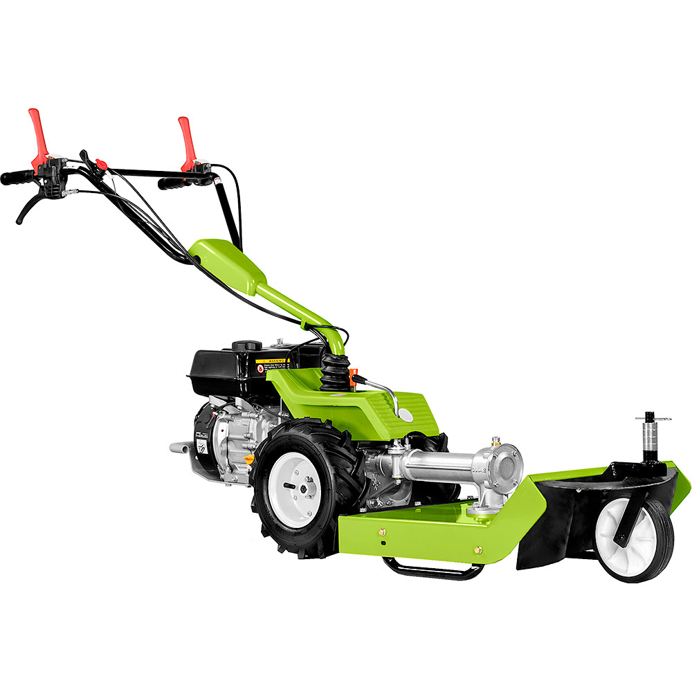 Several rear and front attachments can be connected to the machine, thanks to its 180° reversible handlebar: rotary tiller, sickle bar, mower etc. can be fitted via a coupling without the help of tools.