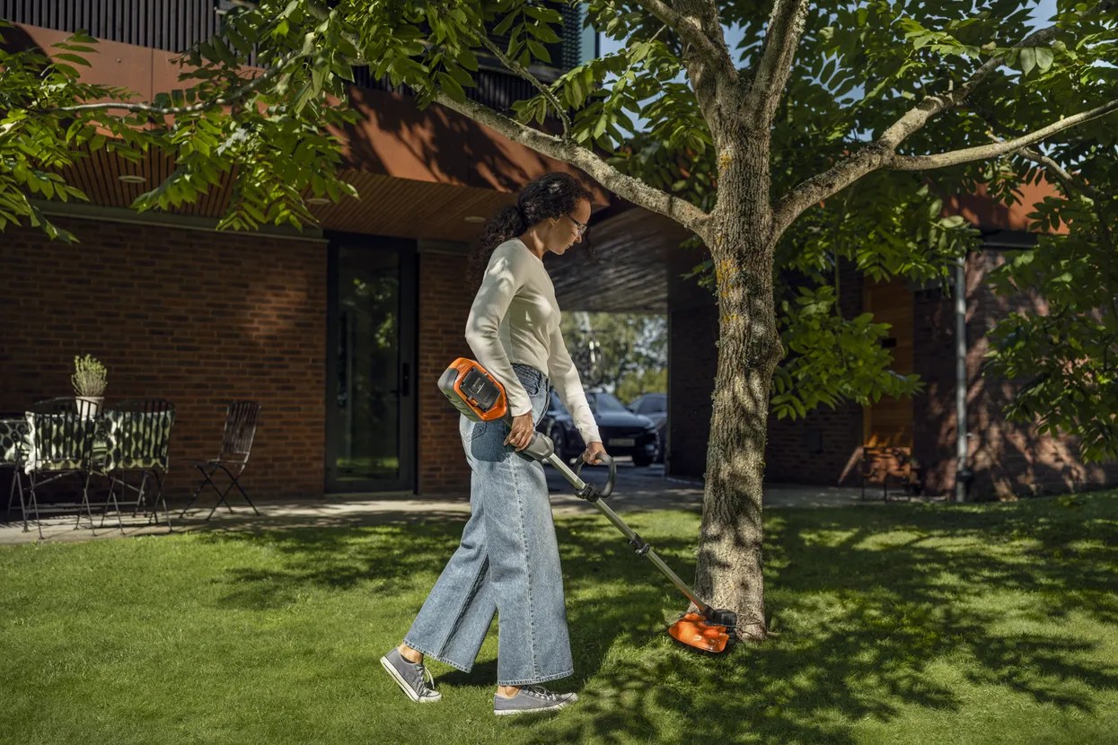 Husqvarna 325iRJ – an efficient battery brushcutter that is convenient to use over longer periods and has the performance to handle thick and heavy grass.