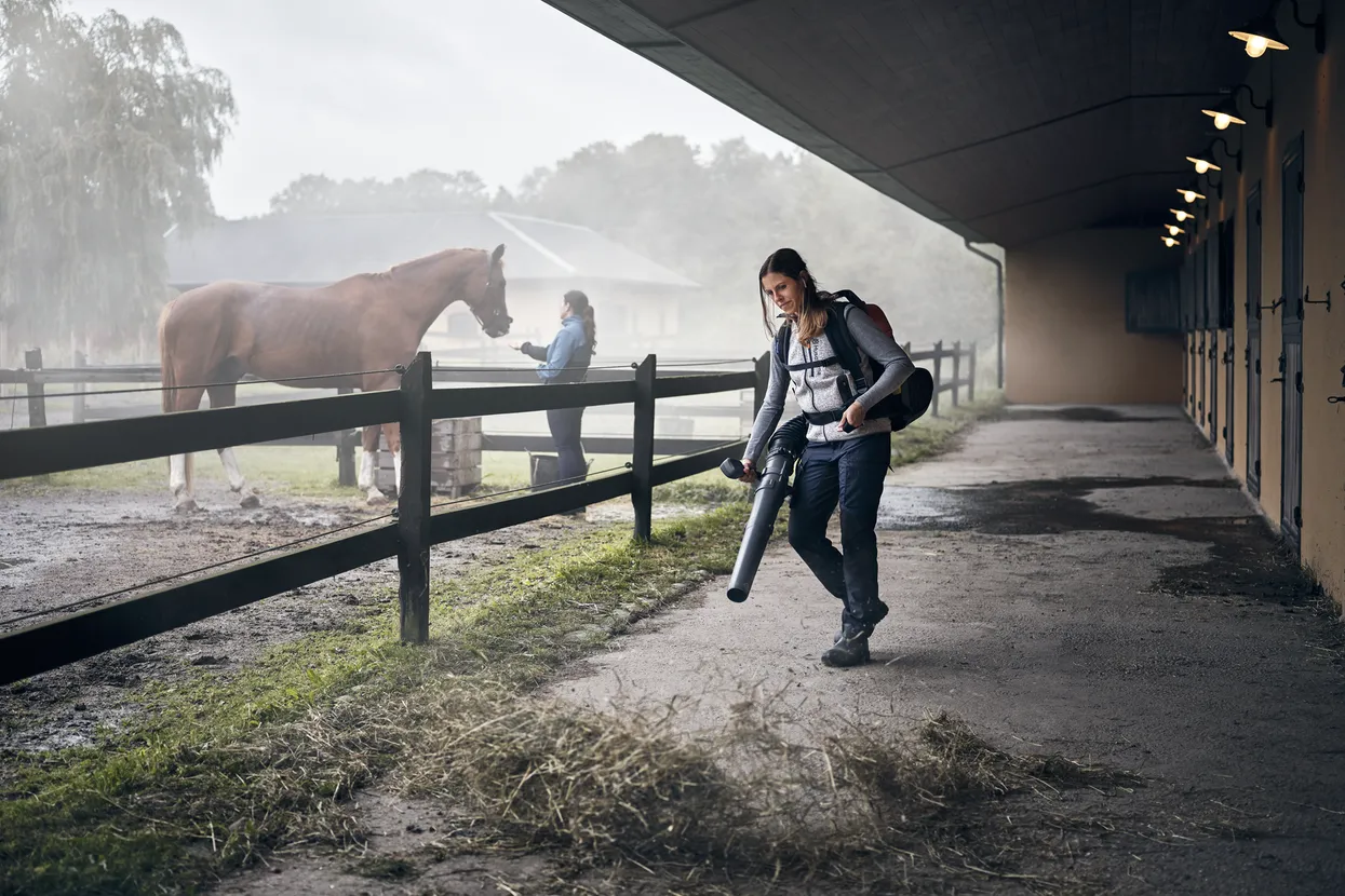 Experience battery-powered outdoor cleaning with low levels of noise and vibrations with this well-balanced backpack leaf blower. Husqvarna 340iBT provides a high blow force of 17N and features an intuitive user interface, enabling efficient work. With two battery slots, you can work longer with fewer interruptions, which is also enhanced by the timesaving auto switch function. The adjustable handle provides increased control and comfort, preventing your arm from being pulled downwards.