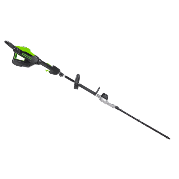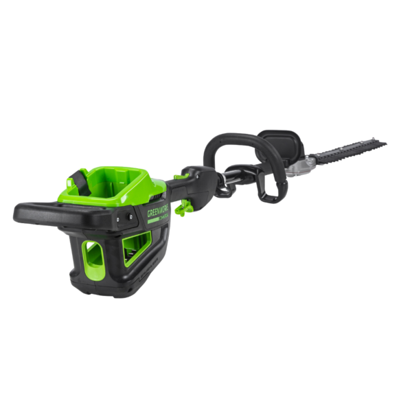 The GREENWORKS® 60V cordless pole hedge trimmer is the ideal choice for homeowners who want the convenience and benefits of going cordless for everyday yardwork.
