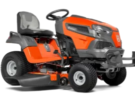 Husqvarna TS 142T is a compact side discharge tractor with smart, user-friendly design, developed for use in small to mid-size gardens. Equipped with pedal-operated, hydrostatic transmission, 15″ deluxe seat and ergonomic steering wheel.